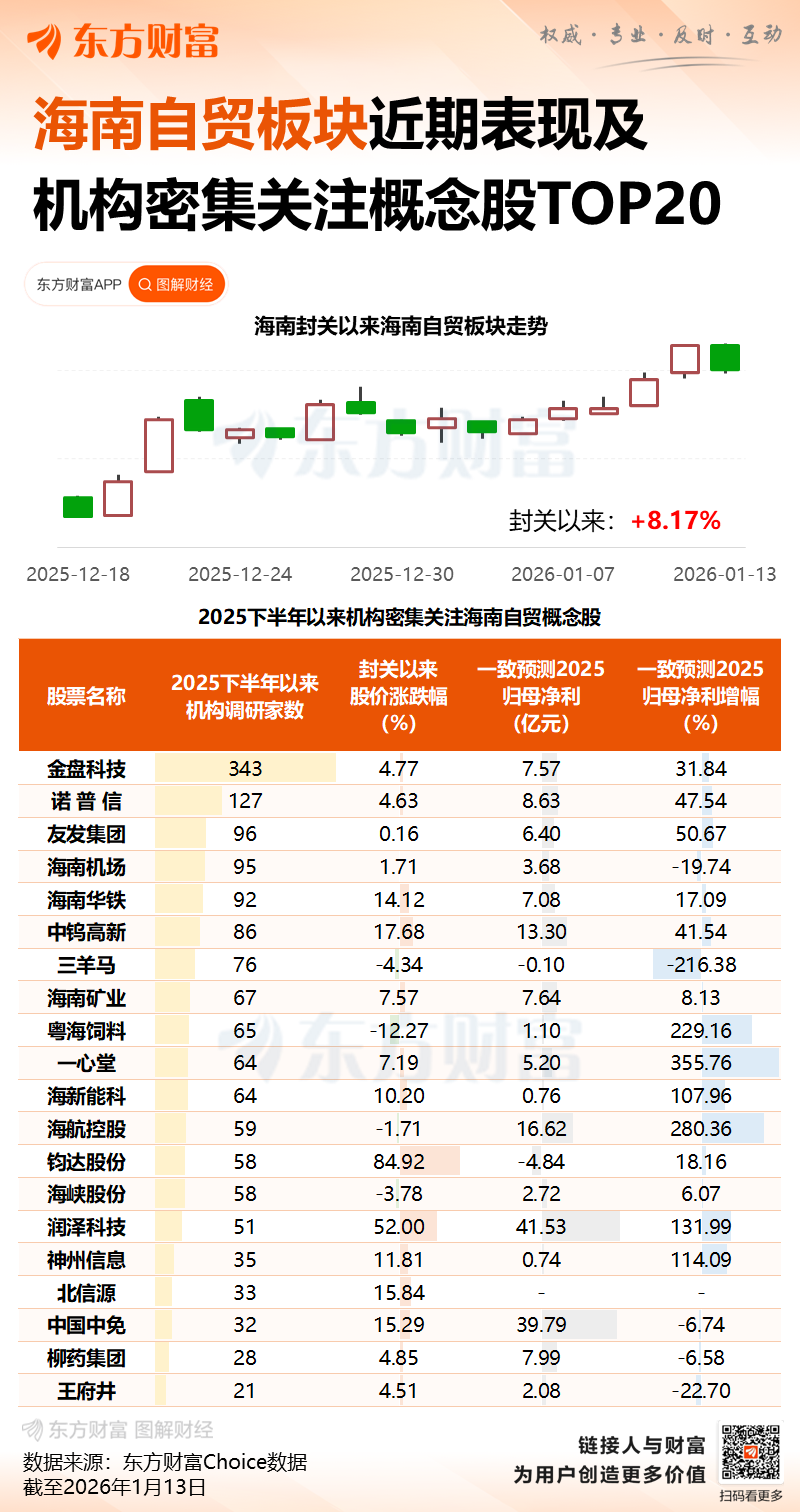 海关总署1月14日发布数据显示,海南自贸港自2025年12月18日封关以来,截至2026年1月10日,海关监管离岛免税购物人数58.5万人次、金额38.9亿元,同比分别增长32.4%、49.6%,相当于平均每天有2.4万人在海南进行免税购物,日均购物总额达到1.6亿元,均高于封关前。 东财图解·加点干货(新华社) 文章转载自 东方财富