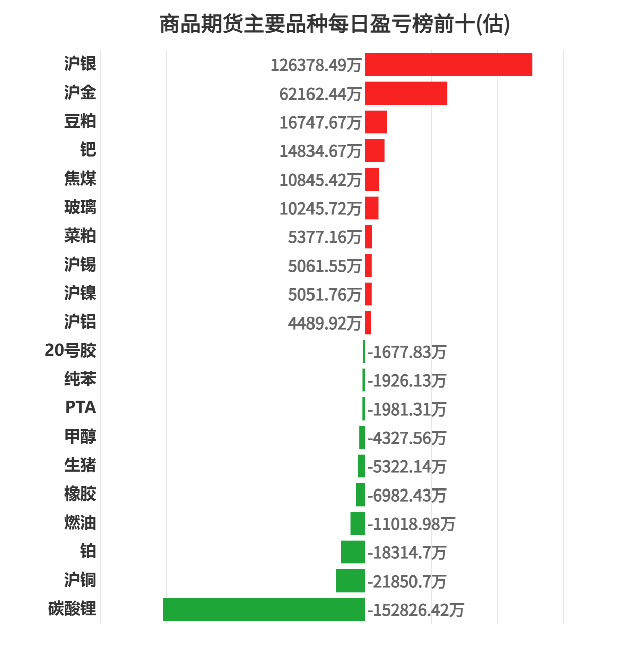 今日商品期货上榜机构席位中沪银盈利第一,为 126378.49 万元。