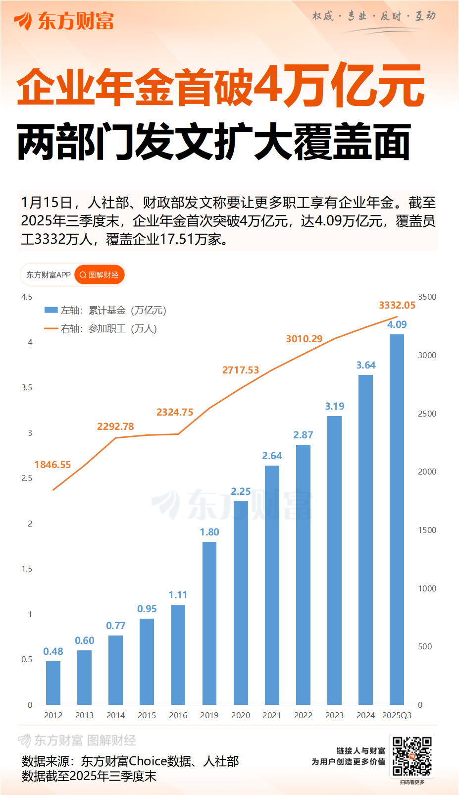1 月 15 日,人力资源社会保障部、财政部对外发布关于进一步做好企业年金工作的意见,增强企业年金制度的包容性、灵活性和便捷性,持续推动扩大覆盖范围,让更多职工享有企业年金。