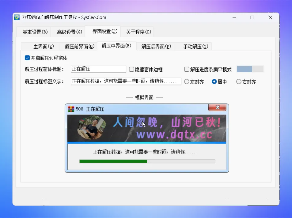 建议把所有的界面设置好,点击保存配置,后续制作自解压文件时,第一时间在基本设置里导入配置