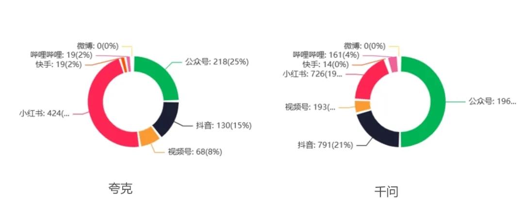 内容平台方面,大厂的投放则各有不同,比如阿里旗下两大应用中,千问更青睐公众号,夸克则偏爱小红书——根据新榜 「AI 产品榜」,截止 12 月 28 日当周,夸克内容占比最高的平台为小红书,达到 48%。