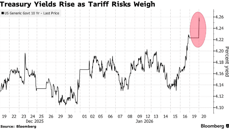 随着美国因格陵兰岛问题而威胁加征关税,削弱了市场对美国资产的需求,并加剧了对华盛顿长期财政状况的担忧,美国国债加入了全球债券的抛售行列。