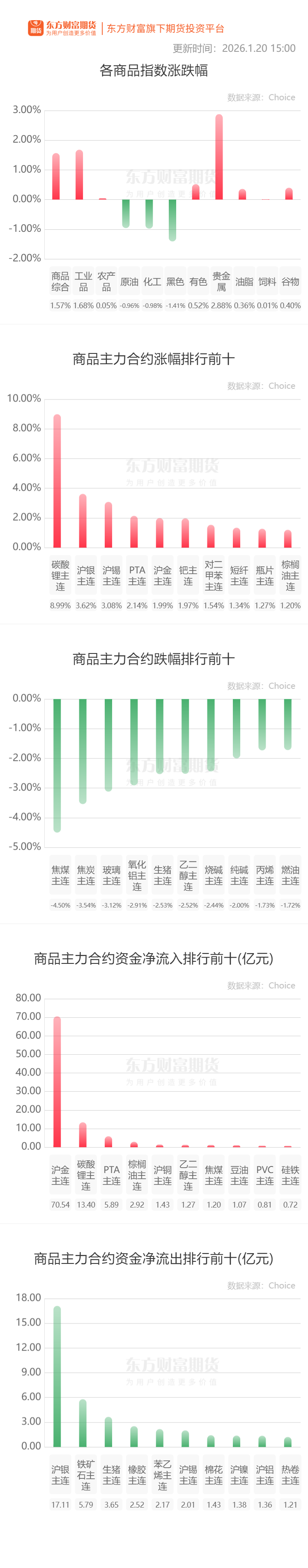 钢材:截至 2026 年 1 月 20 日,11 家钢厂发布 2026 年冬储政策,其中东北 4 家,华北 3 家,西北 2 家,西南 2 家,今日新增 1 家钢厂,2026 年 1 月 20 日起开始收款,账面余额+上款金额次日起按日计息,月息 7 厘;可锁价可保价,到款客户优先享有锁价权和保值权,对应金额停止计息;此冬储政策收款截止日期 2026 年 2 月 10 日;提货截止日期 2026 年 5 月 15 日,到期后保值部分未提完款项转为现货款,执行当期销售政策。(我的钢铁网)