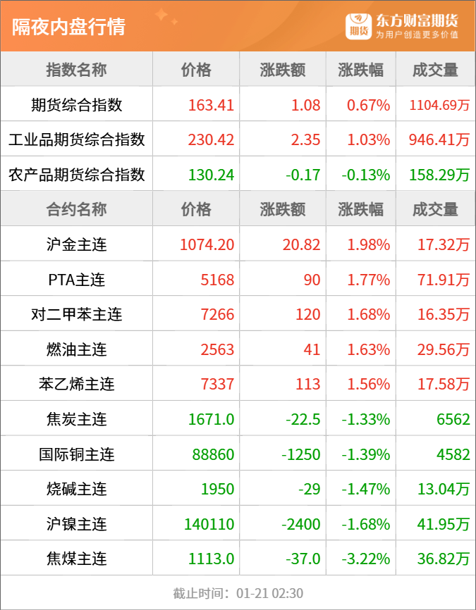 棉花:据张家港保税区纺织原料市场公布,截至 2026 年 1 月 19 日,张家港保税区棉花总库存 3.57 万吨,同比减少 0.33%。其中保税棉 3.28 万吨,同比减少 0.36%;非保税棉 0.30 万吨,同比增加 0.37%。(新华财经)