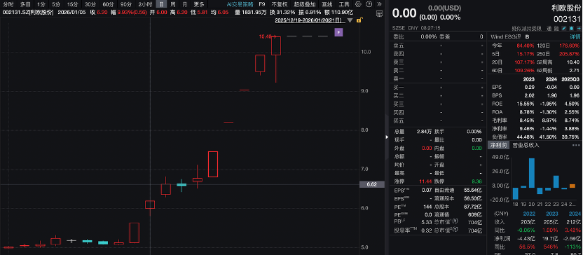 1 月 20 日晚,利欧股份(002131) 公告称,公司股票将于 2026 年 1 月 21 日 (星期三) 开市起复牌。此前,公司股票连续 10 个交易日收盘价涨幅偏离值达 96.77%,股价波动较大,公司申请停牌核查。