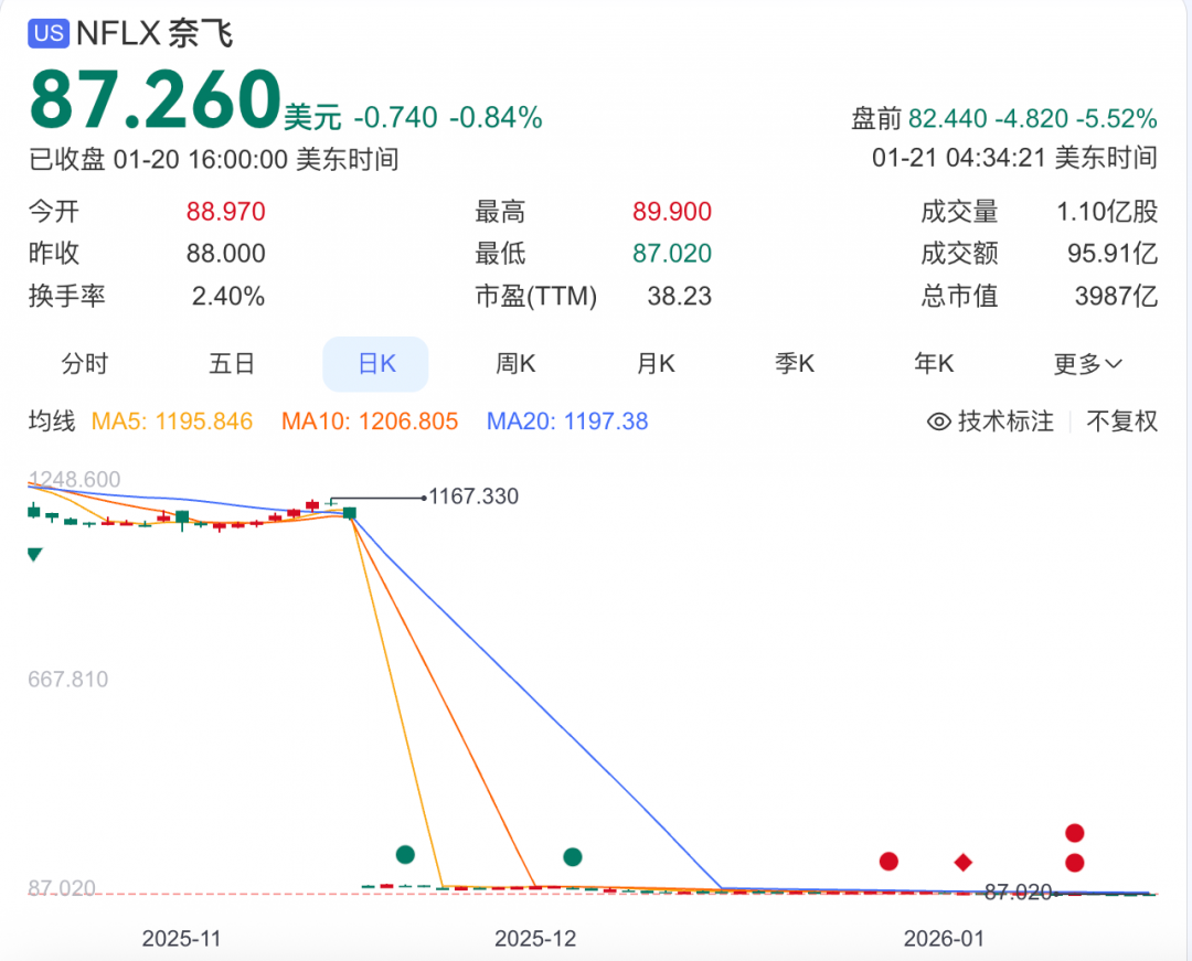 1 月 20 日,奈飞在最新财报中披露,公司与华纳兄弟探索修订了合并协议,交易改为全现金支付,替代此前现金加股票的混合方案,收购总额维持在 827 亿美元不变。