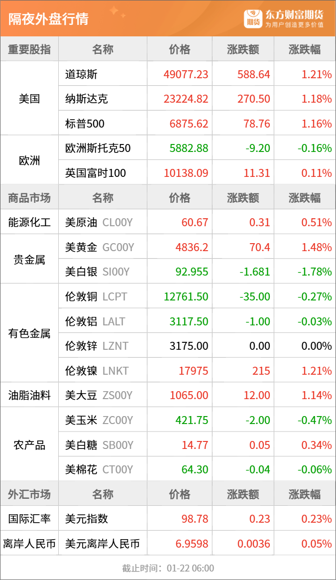 沪金:国际黄金期货价格和现货价格在 20 日均再创新高,双双突破每盎司 4800 美元。法国巴黎银行(BNP Paribas) 大宗商品策略主管 David Wilson 最新表示,新的地缘政治不确定性正推动金价比预期更快地达到每盎司 5000 美元,但实物交割的缓解应该会让白银在达到 100 美元后不久遭到抛售。(财联社)