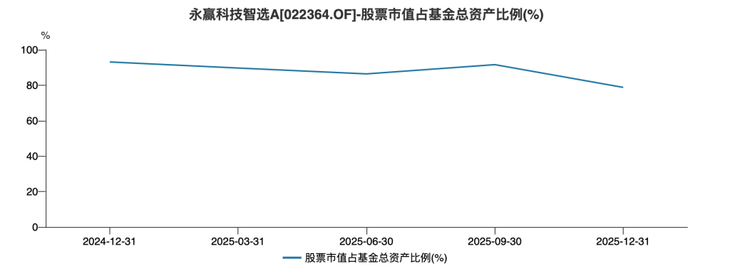 值得一提的是,仓位方面,永赢科技智选在 2025 年四季度末的股票仓位由原先的 91.59% 骤降至 78.76%,也是该基金成立以来的最低水平。与此同时,其前十大重仓股的集中度也有所下降,由 73.25% 下调至 65.48%。