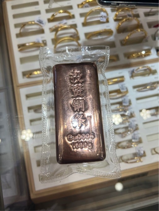 近期,社交媒体上有博主分享深圳水贝出售投资铜条 (1000g),售价为 180 元—250 元。