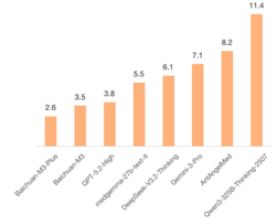 上周百川 M3 大模型的正式开源,M3 不仅在 Healthbench、Healthbench Hard 等多个权威评测中登顶榜首,实现了对 GPT-5.2 的全面超越,更在 OpenAI 引以为傲的低幻觉领域完成超越,以 3.5% 的幻觉率领跑全球。M3 Plus 的事实性幻觉降低到新的 SOTA,仅 2.6%,相较 GPT-5.2 大幅下降超 30%。即便与行业标杆 Open Evidence 相比,M3 Plus 也完成了超越。