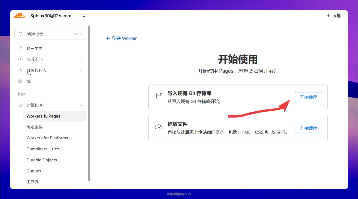 - 登录 Cloudflare,进入 「计算和 AI」→「Workers and Pages」;