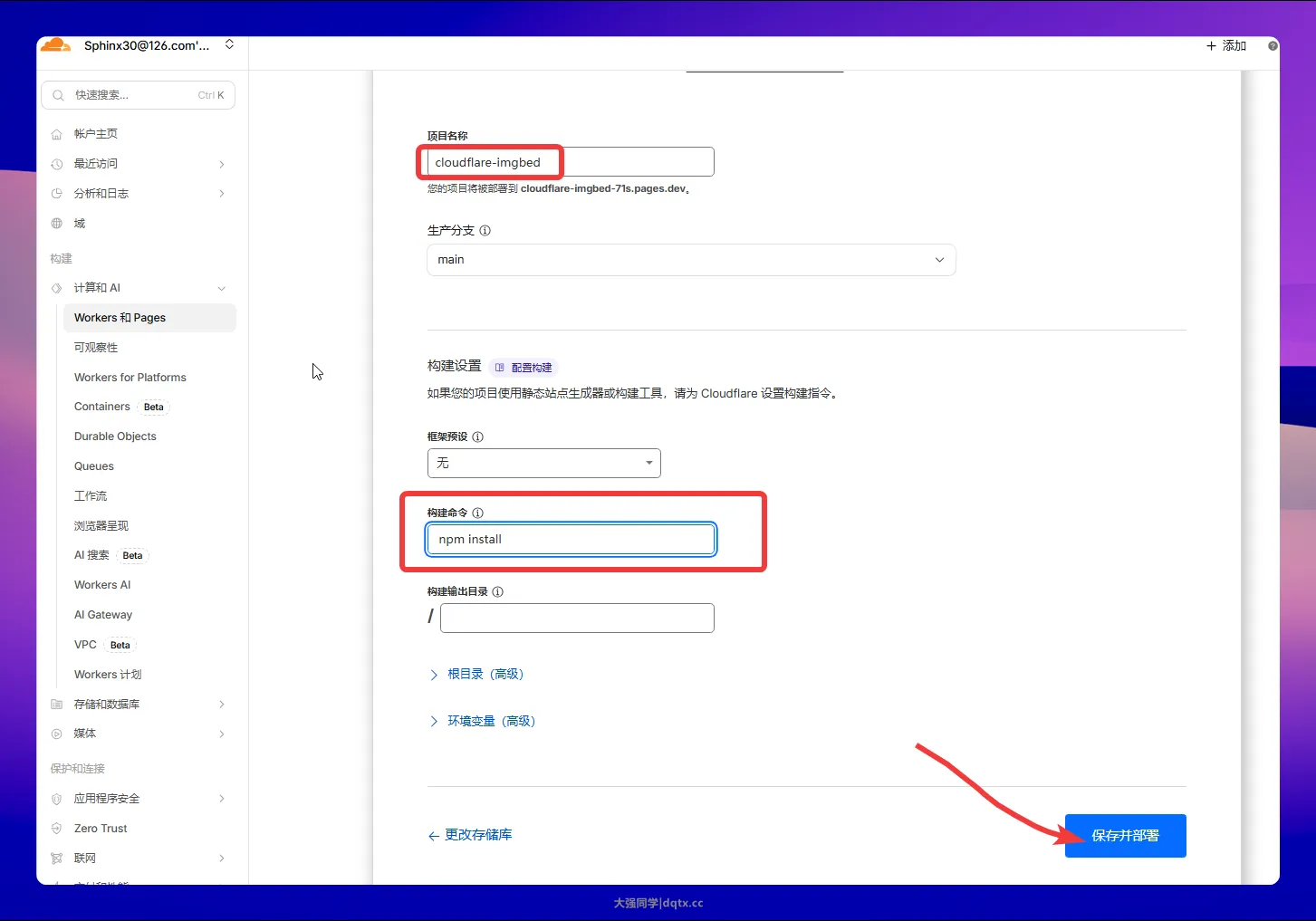 - 保存后项目会自动重新部署,部署完成后可通过 Cloudflare 分配的