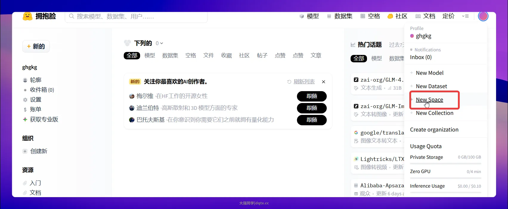 - 免费 100G:用 HuggingFace 空间做存储,无容量费;