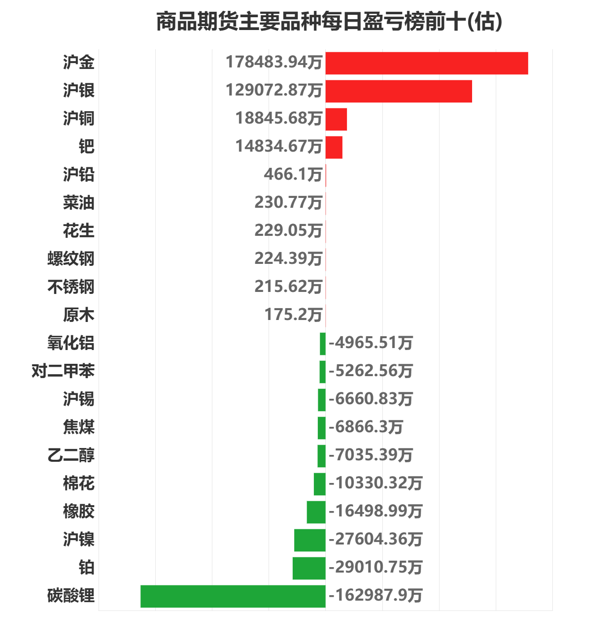 今日商品期货上榜机构席位中沪金盈利第一,为 178483.94 万元。