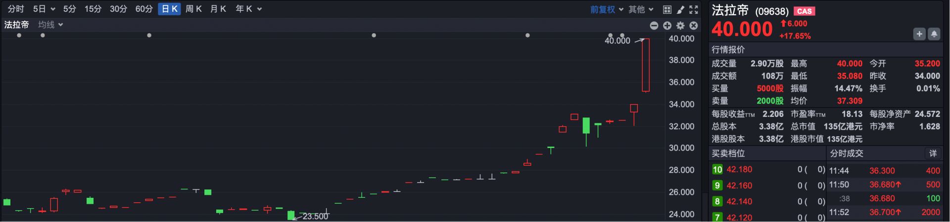 市场焦点方面,在港股上市的豪华游艇股法拉帝 (HK09638) 大涨 17.65%,创出历史新高。2026 年以来,法拉帝累计涨幅已达 47%,总市值达 135 亿港元。