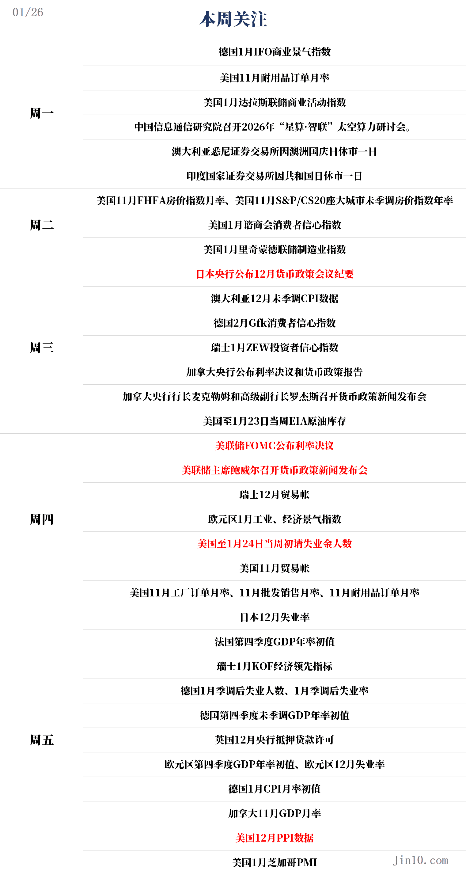 以下是新的一周里市场将重点关注的要点 (均为北京时间):