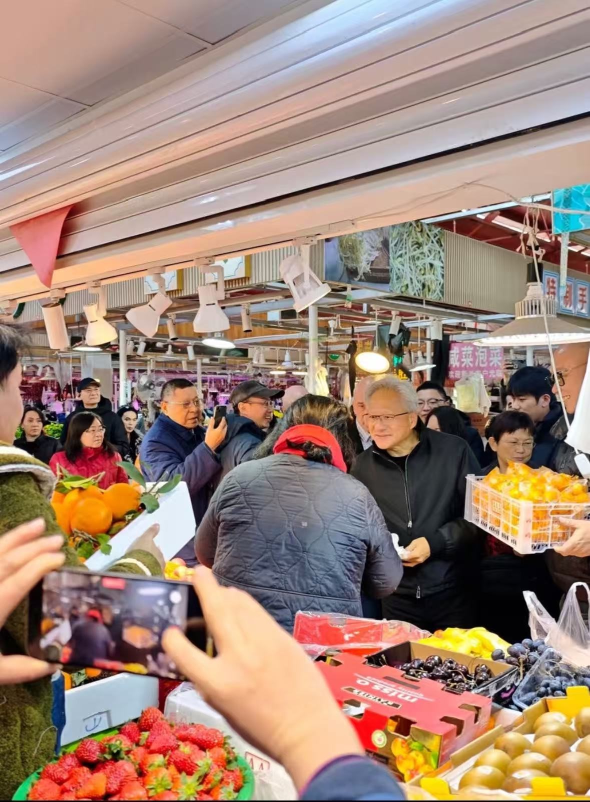 24 日,黄仁勋还现身陆家嘴街道乳山路锦德菜市场,体验上海市井风俗。