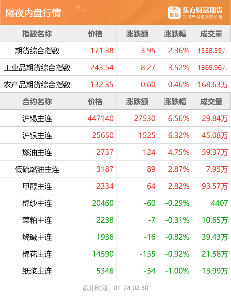 欧线集运:上海航运交易所数据显示,截至 1 月 23 日,上海出口集装箱运价指数 (综合指数) 报 1457.86 点,与上期相比下跌 116.26 点。(财联社)