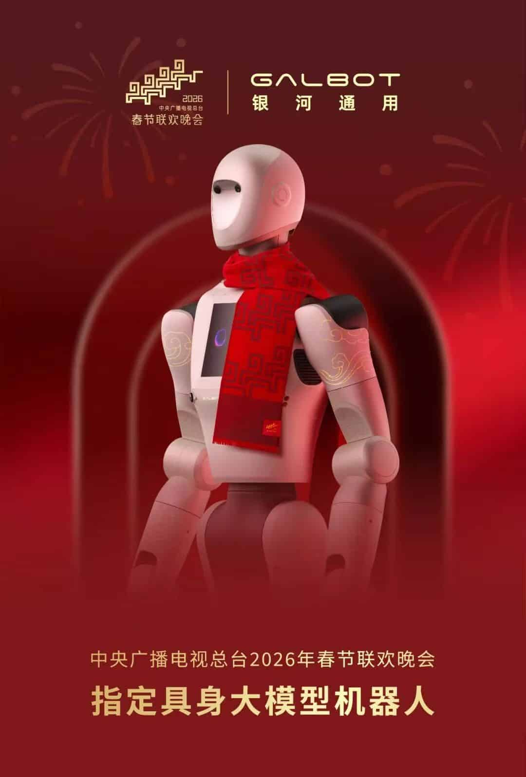 据银河通用机器人官方微信公众号消息,1 月 25 日,中央广播电视总台正式官宣,银河通用机器人正式成为总台 2026 年春节联欢晚会指定具身大模型机器人。