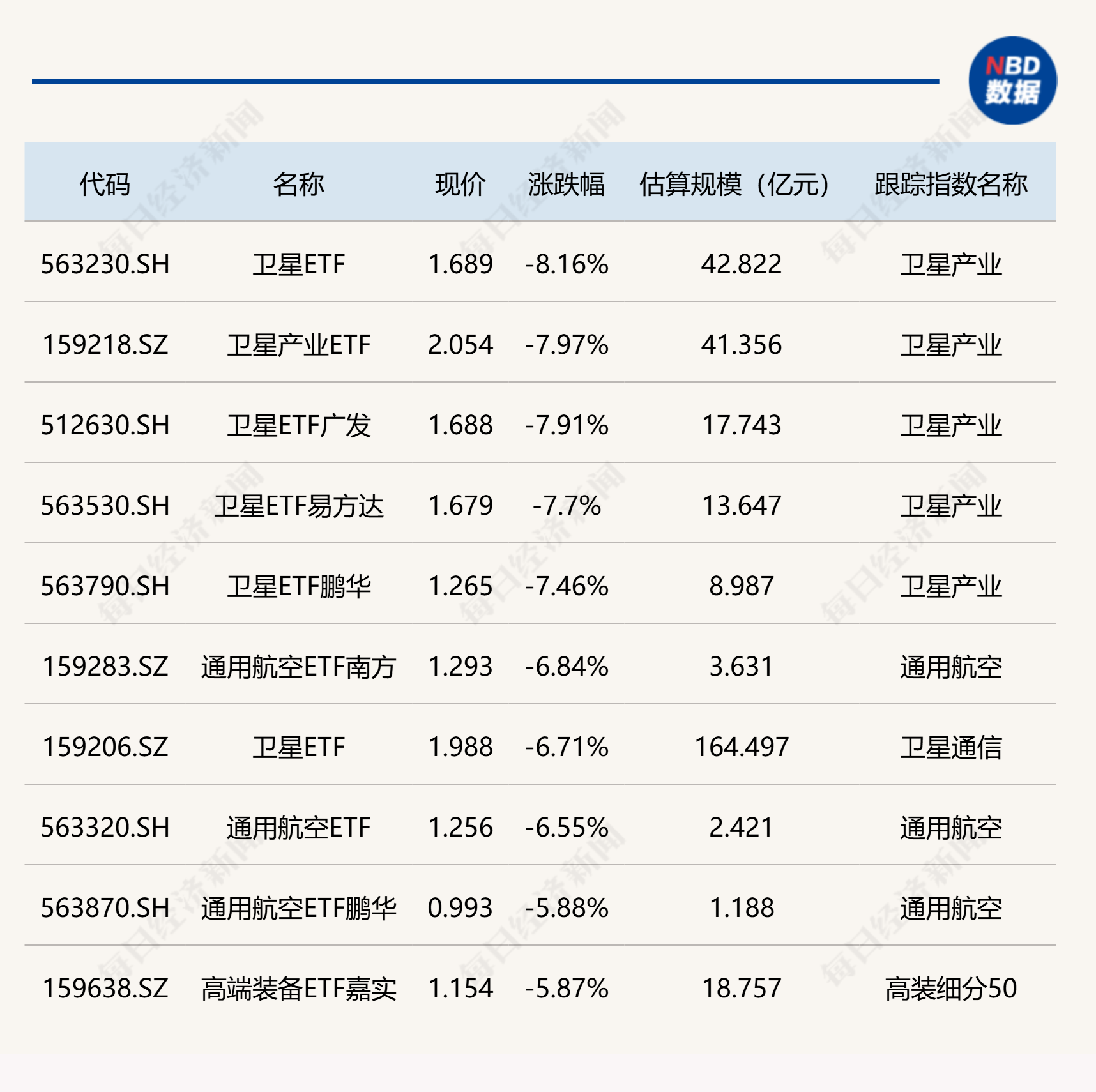 (原标题:ETF 今日收评 | 黄金股相关 ETF 涨超 8%,卫星 ETF 跌超 8%)