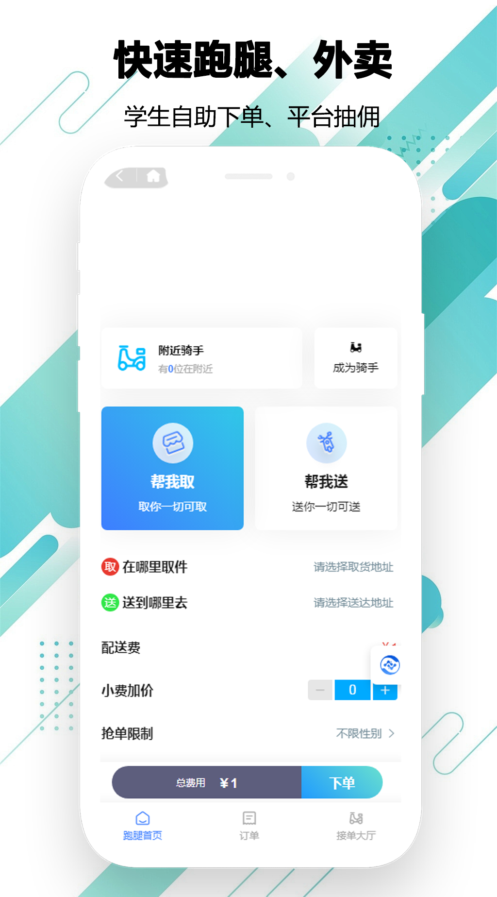 代取快递 (校园最大痛点)、代买物品、代送文件。