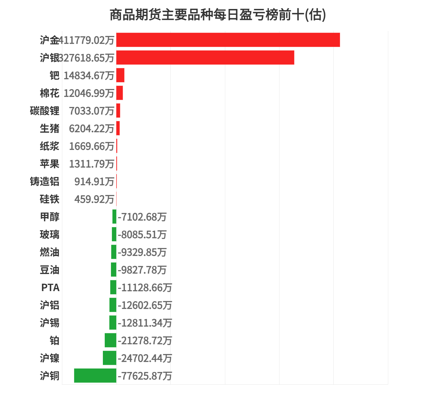 今日商品期货上榜机构席位中沪金盈利第一,为 411779.02 万元。