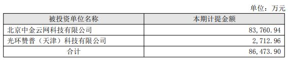 针对预计计提约 8.65 亿元的商誉减值准备,光环新网称,包括公司 2016 年收购北京中金云网科技有限公司 (以下简称 「中金云网」) 及 2022 年收购光环赞普 (天津) 科技有限公司 (以下简称 「光环赞普」) 形成的商誉,其中中金云网计提约 8.38 亿元,光环赞普计提约 2712.96 万元。