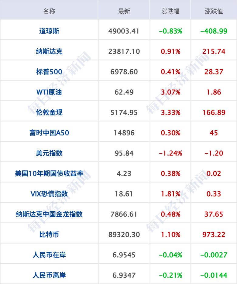 美股三大指数收盘涨跌不一,道指跌 0.83%,纳指涨 0.91%,标普 500 指数涨 0.41%;科技股普涨,英特尔涨超 3%,亚马逊涨超 2%。医疗保险股普跌,标普 1500 管理型医疗指数下跌 18%,创下自 1997 年以来的最大跌幅;联合健康跌超 19%,CVS 跌超 14%。中概股涨跌不一,纳斯达克中国金龙指数涨 0.48%,爱奇艺、哔哩哔哩涨超 3%,携程集团跌逾 2%,小鹏汽车、理想汽车跌超 1%。