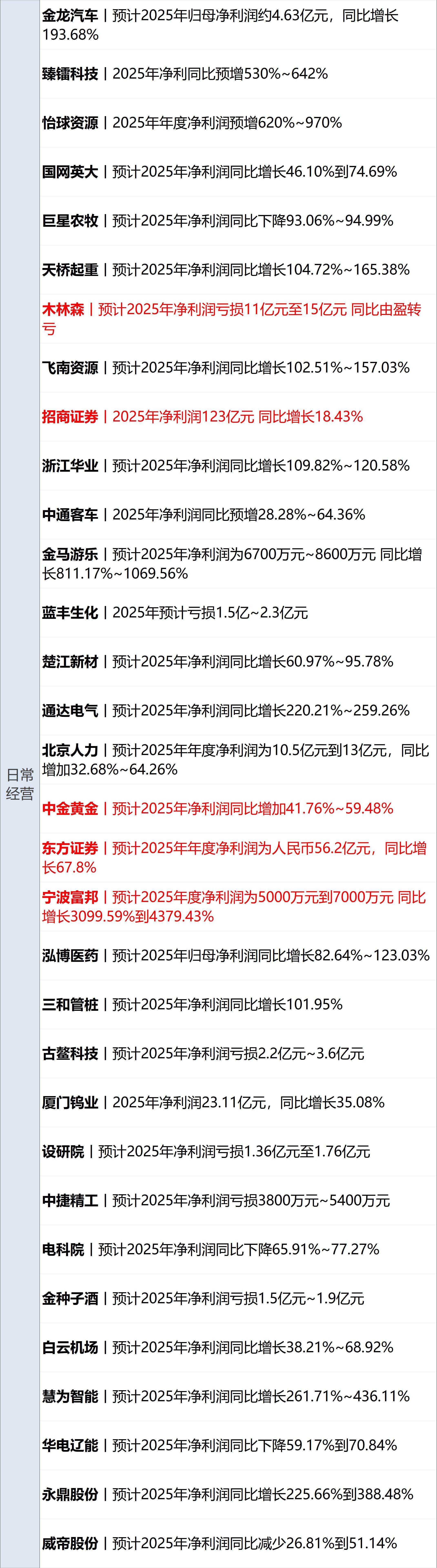 万科 A(SZ000002,股价 4.75 元,市值 566.7 亿元):1 月 27 日,万科 A 公告,根据关于万科企业股份有限公司 2022 年度第五期中期票据 2025 年第一次持有人会议相关公告及我公司答复公告,议案六 「延长本期中期票据的宽限期的议案」 获得通过并生效,根据议案内容,宽限期相关约定调整如下:本期中期票据存续期内的本息兑付日之宽限期由 5 个工作日延长至 30 个交易日,即宽限期届满日为 2026 年 2 月 10 日。
