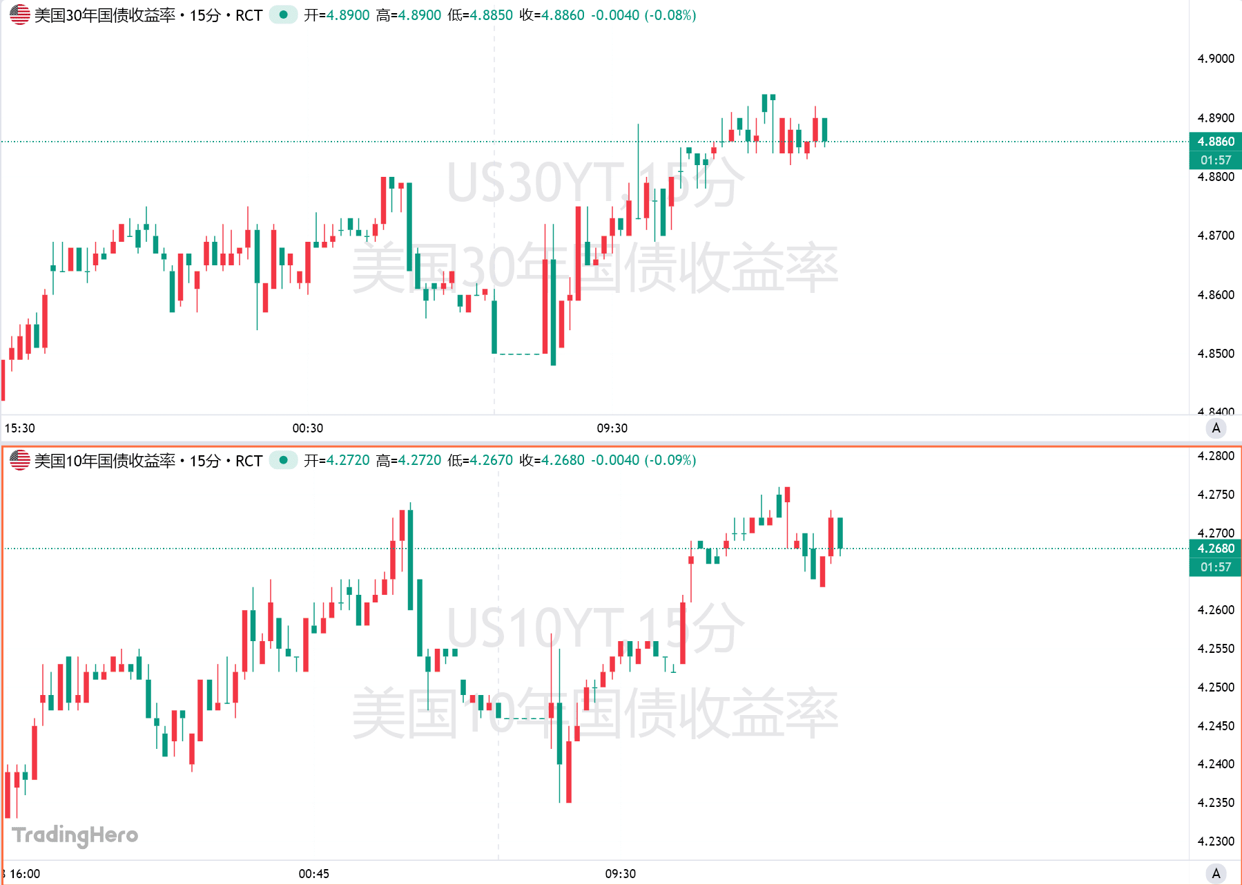 美国国债全品种走弱,长期品种领跌,30 年期美债收益率攀升 3 个基点至 4.89%。
