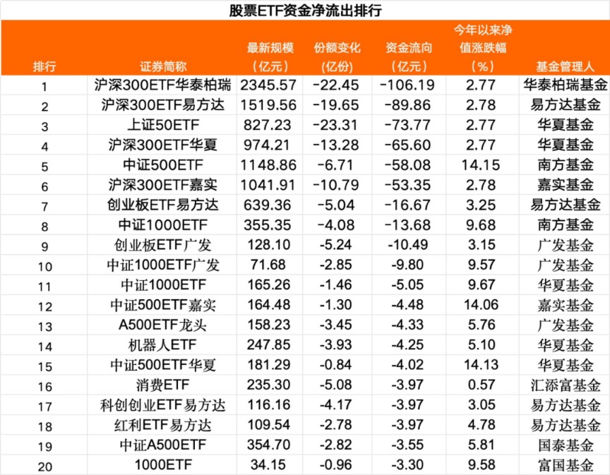 股票 ETF 净流出近 300 亿元