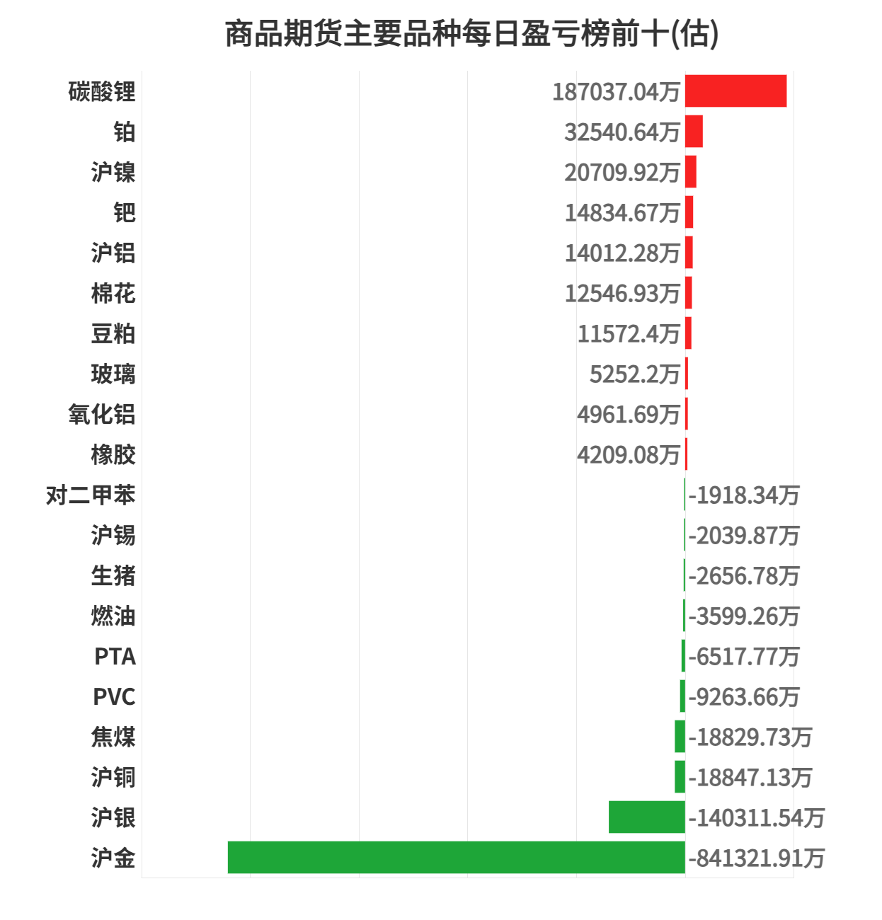 今日商品期货上榜机构席位中碳酸锂盈利第一,为 187037.04 万元。