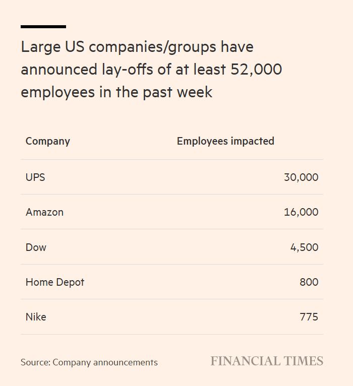 本周,美国多家大型企业公布裁员数万人的计划,这是企业在历经多年大举招聘后开始精简员工队伍的最新信号。