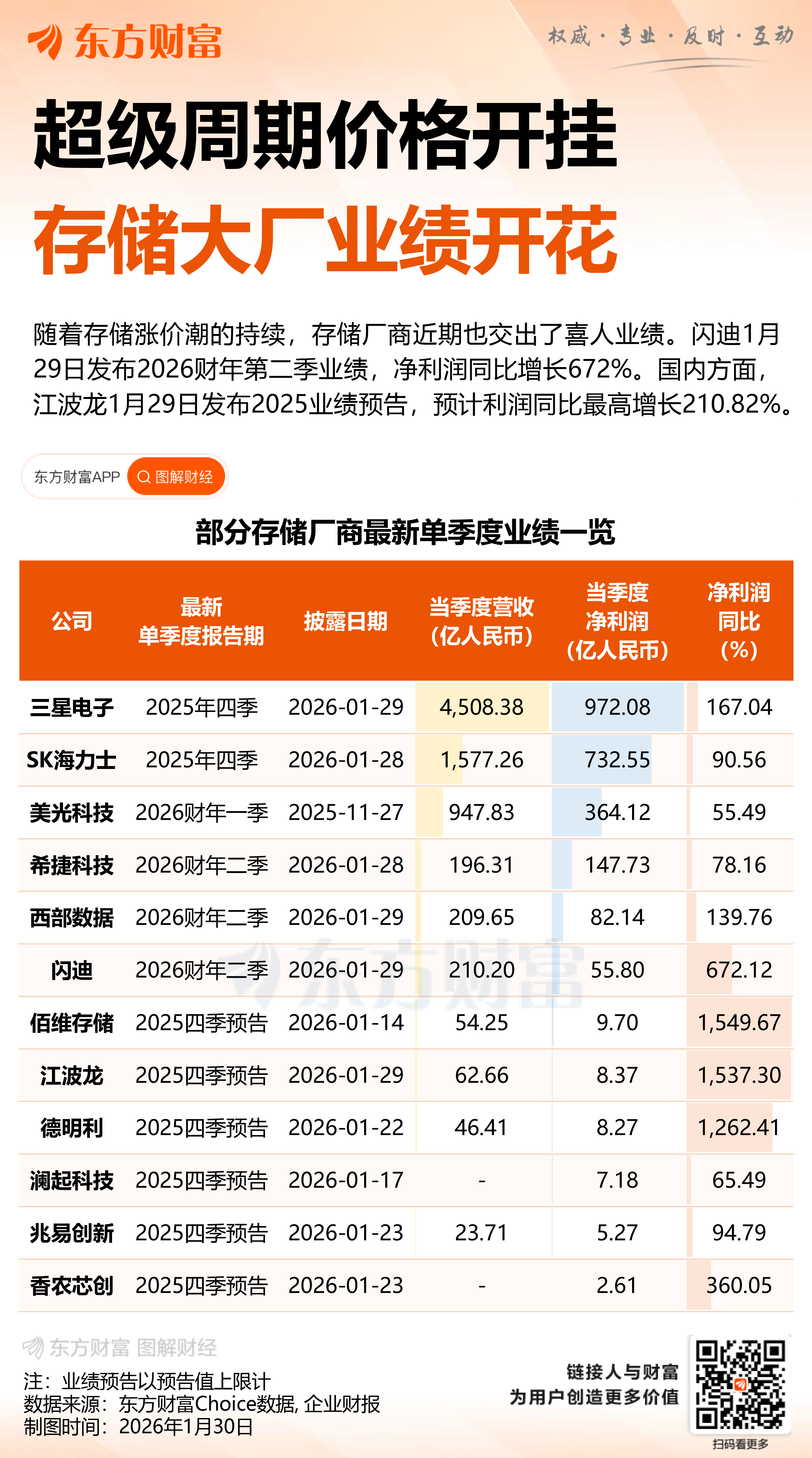 种种信号表明,存储市场正在走出低谷,进入新一轮上行周期。随着 2025 年业绩预告密集披露,A 股存储相关公司也纷纷交出亮眼 「成绩单」。
