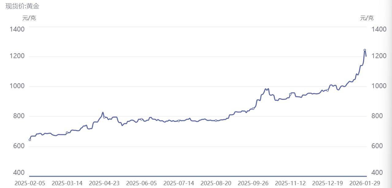 「前天 (1 月 29 日) 金价 (1 克)1200 多元,今天 1126.5 元。」 记者以消费者身份实地走访深圳水贝时,一位专门售卖金条的商家表示,目前金条价格是大盘价加 15 元工费,金条 1 克到手是 1141.5 元,相较前天的价格下跌超过 50 元,当被问及今日 (1 月 31 日) 价格是否还会变动时,该商家表示需等到下周一,「今天是周末,金价不会变动」。