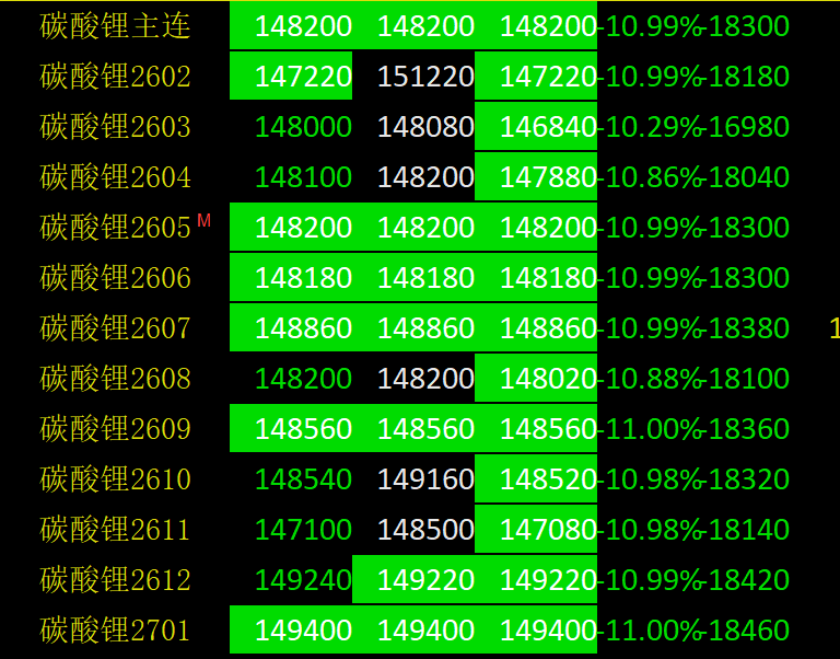 1 月 30 日,锂矿概念集体调整,锂矿板块跌超 6%,金圆股份、威领股份、西部矿业、西藏矿业等跌超 9%。当日,碳酸锂期货也呈现持续下行态势,多个合约跌停,主力合约 LC2605 下跌 10.99%,报收 148200 元/吨。