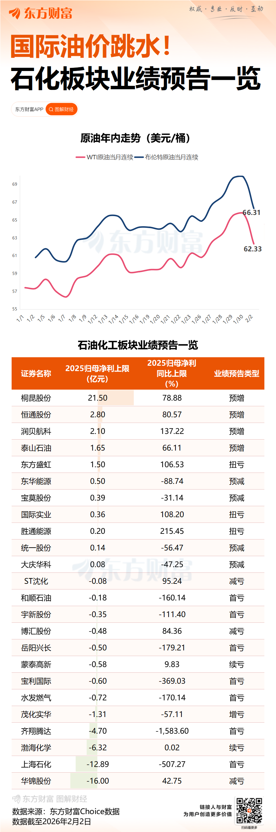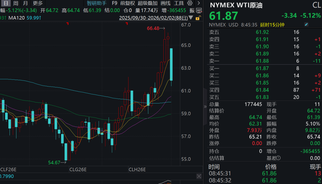 随着地缘政治风险缓和,国际原油期货价格 2 月 2 日大幅下挫,WTI 原油、布伦特原油盘中跌幅均超过 5%。其中,ICE 布油一度跌破 66 美元/桶。