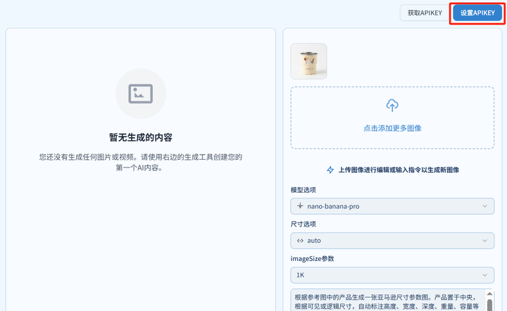 - 在网站右上角找到 「设置 APIKey」 粘贴你复制的 API 密钥。