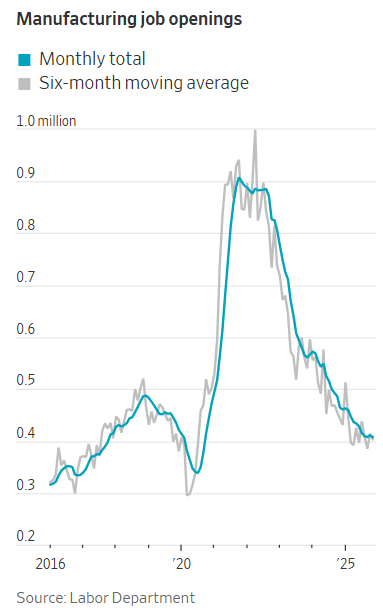 特朗普也采取了其他措施试图重振制造业。他迫使日本和韩国等贸易伙伴达成协议,承诺在美国投资数千亿美元。苹果、台积电和阿斯利康等公司已宣布了可能创造数千个制造业岗位的大型项目。政府官员表示,长期愿景是实现产业自给自足。但这些投资的时间表往往长达数年,使制造业近期前景不明朗。「我不知道所有这些钱什么时候才会开始见效,」 特朗普去年 12 月接受 《华尔街日报》 采访时表示。
