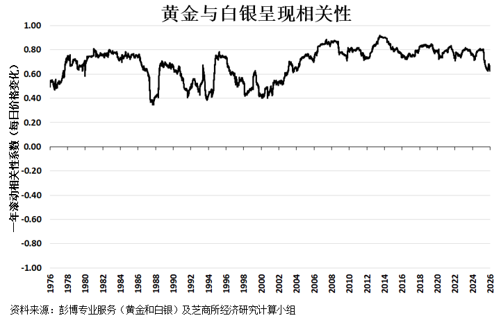 图 3:白银与黄金走势通常呈强正相关