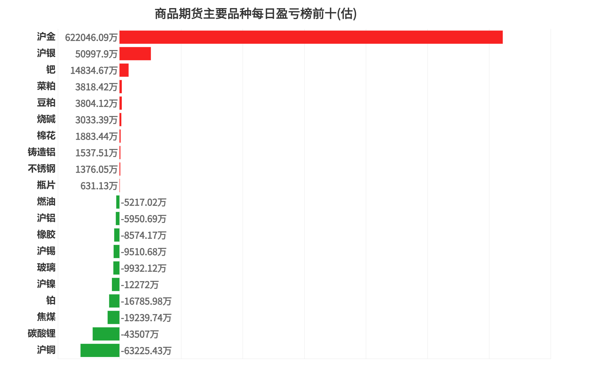 今日商品期货上榜机构席位中沪金盈利第一,为 622046.09 万元。