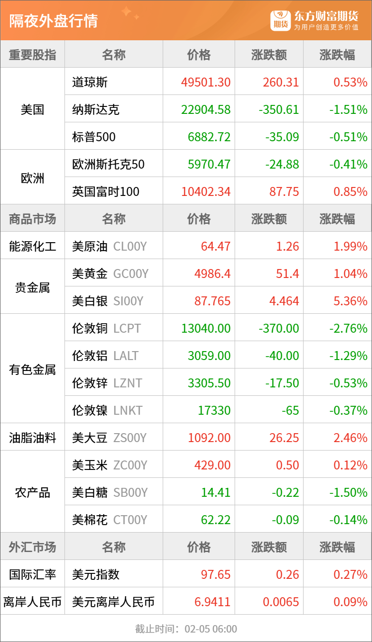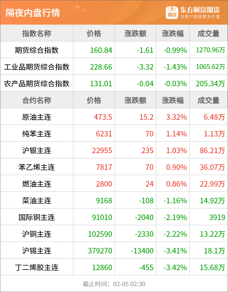 沪铜:全球铜库存一年翻倍至百万吨,创五年新高,四季度全球矿山出现供应中断,但库存仍然攀升,显示需求相对减弱。高频指标中,伦敦金属交易所的净投机头寸开始下降,取消仓单数量也在减少,显示出投资者情绪趋于谨慎。摩根大通认为,铜价短期将在 1.2 万美元/吨附近承压盘整,静待二季度需求信号。(财联社)