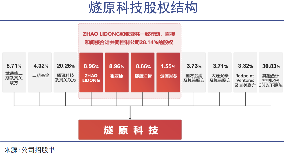 根据招股书,腾讯以 20.26% 的持股比例成为最大单一股东,超过了两位创始人直接持股的总和。