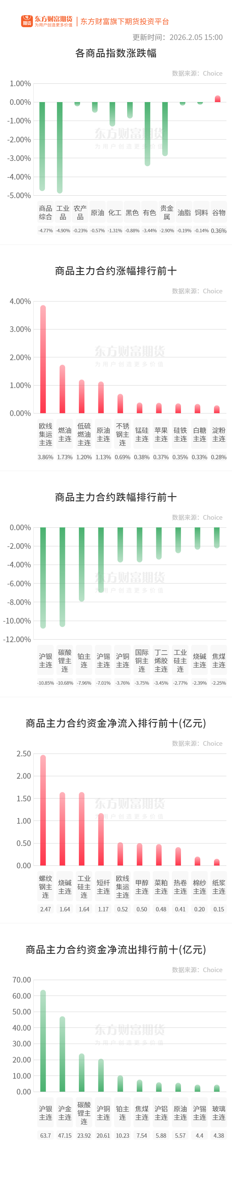 玻璃:截止到 2026 年 2 月 5 日,全国浮法玻璃样本企业总库存 5306.4 万重箱,环比+50 万重箱,环比+0.95%,同比-11.77%。折库存天数 23.1 天,较上期+0.3 天。