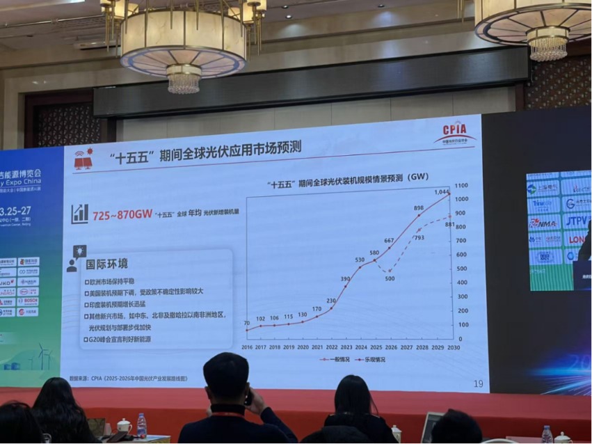 会上发布的路线图预计,2026 年中国新增光伏装机规模为 180GW 至 240GW,全球新增光伏装机规模为 500GW 至 667GW。更长时间来看,预计 「十五五」 期间 (即 2026 年至 2030 年),中国年均光伏新增装机规模为 238GW 至 287GW,全球年均光伏新增装机规模为 725GW 至 870GW。两个市场的趋势均为 2026 年回调,此后回归上升通道。