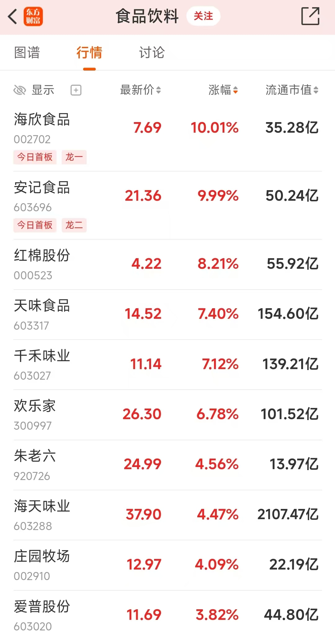 食品饮料板块 2 月 5 日早盘表现强势,海欣食品、安记食品涨停;红棉股份、天味食品、千禾味业、欢乐家等也明显上涨。