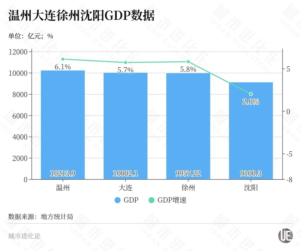 2025 年,温州与大连一起迈过 「万亿」 门槛,成为浙江第三个、东北首个 GDP 破万亿的城市。同期,徐州 GDP 达到 9957.22 亿元,未能如愿跻身 「万亿俱乐部」。