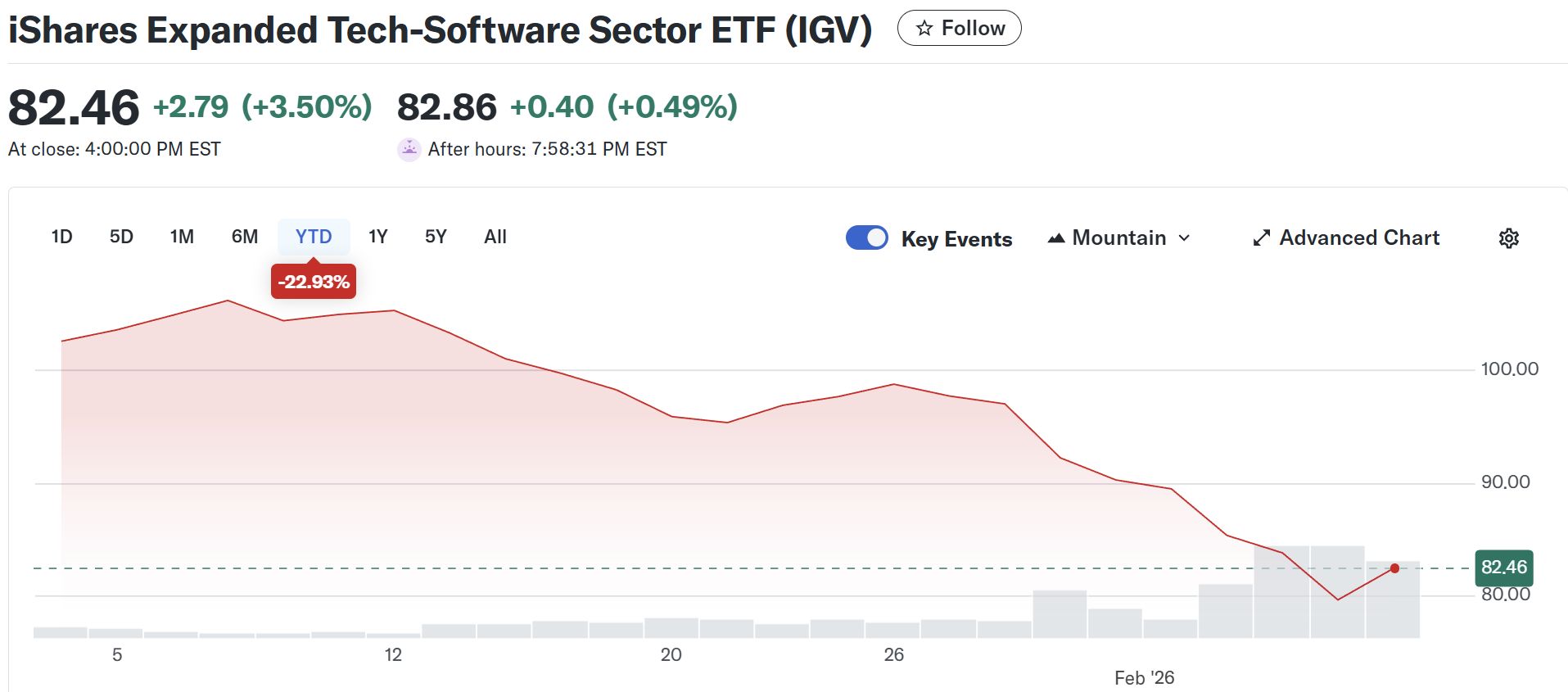 另外,追踪 114 家最大软件公司的 iShares 扩展技术软件 ETF(IGV) 年内跌幅近 23%,较去年 9 月的高点下跌了 30%。