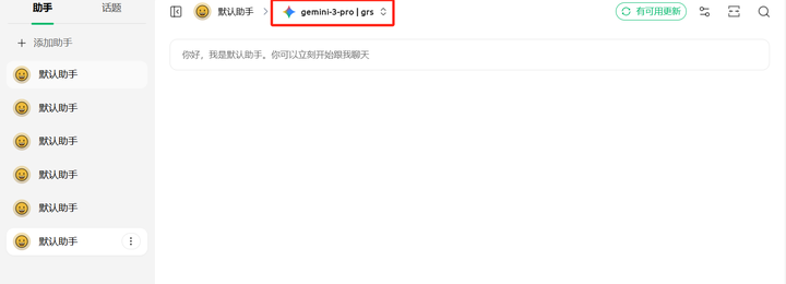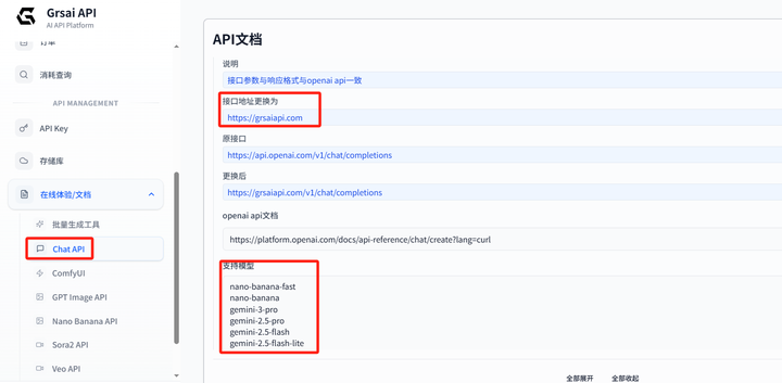 下面是针对 Grsai 平台的详细配置步骤,跟着做基本 3-5 分钟就能用上 Gemini-3-Pro 和 Nano Banana Pro 等模型。最重要提醒:模型名称必须从 Grsai 官方开发文档 (Chat API 部分) 直接复制粘贴,千万不要自己手打!哪怕多一个空格或大小写不对,都会导致连接失败。