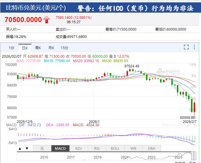 持续下跌的加密货币市场也迎来反弹,其中,比特币隔夜暴跌 16%,一度跌破 6.1 万美元,在周五收复了部分失地,重新站上 7 万美元关口。
